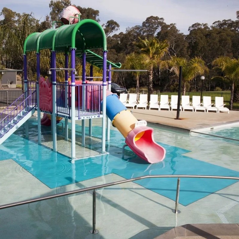 Landing Pads are engineered to resist harsh UV radiation and chemical exposure without losing slip-resistance or cushioning. Fully submerged tiles last even longer.